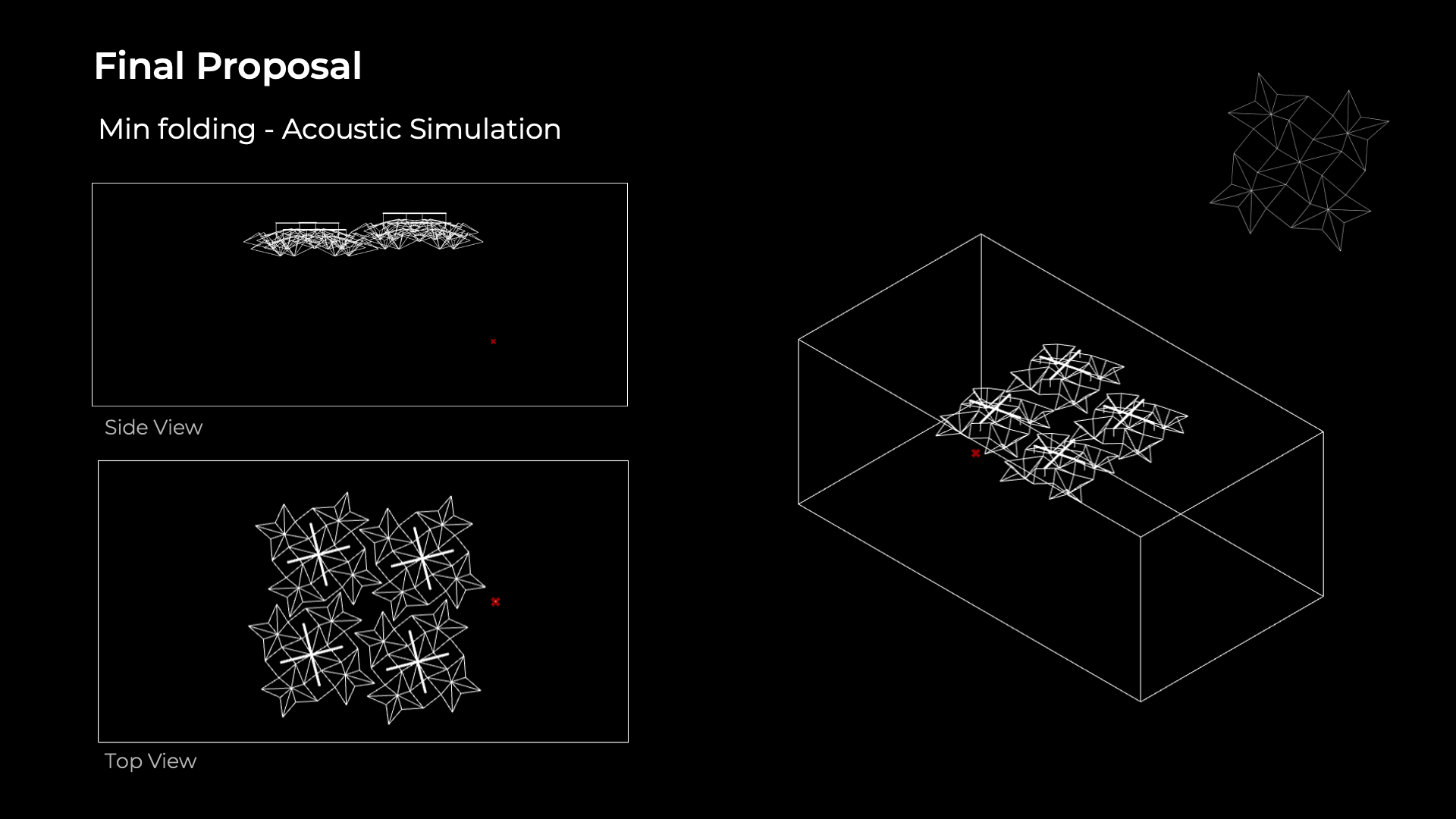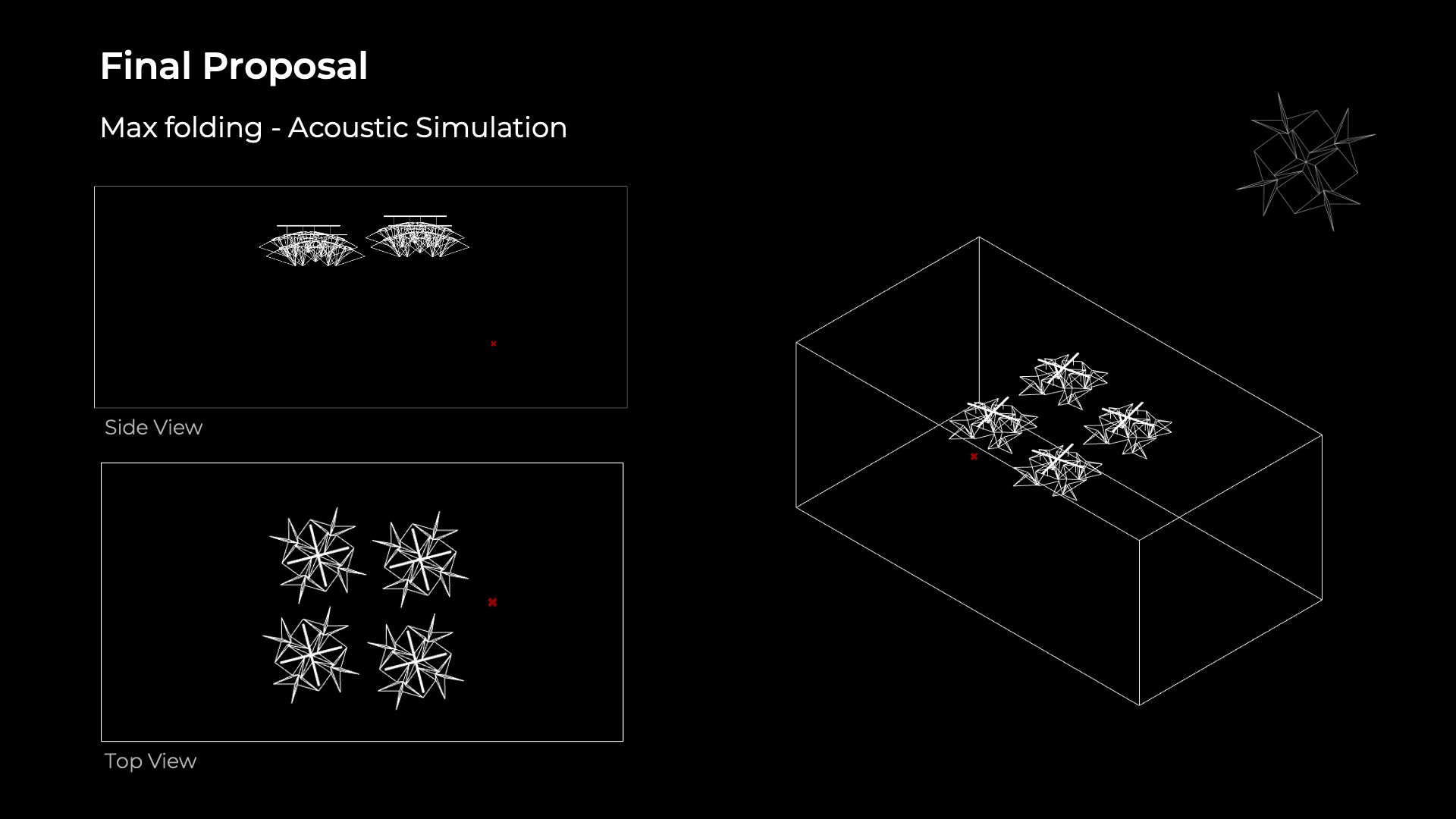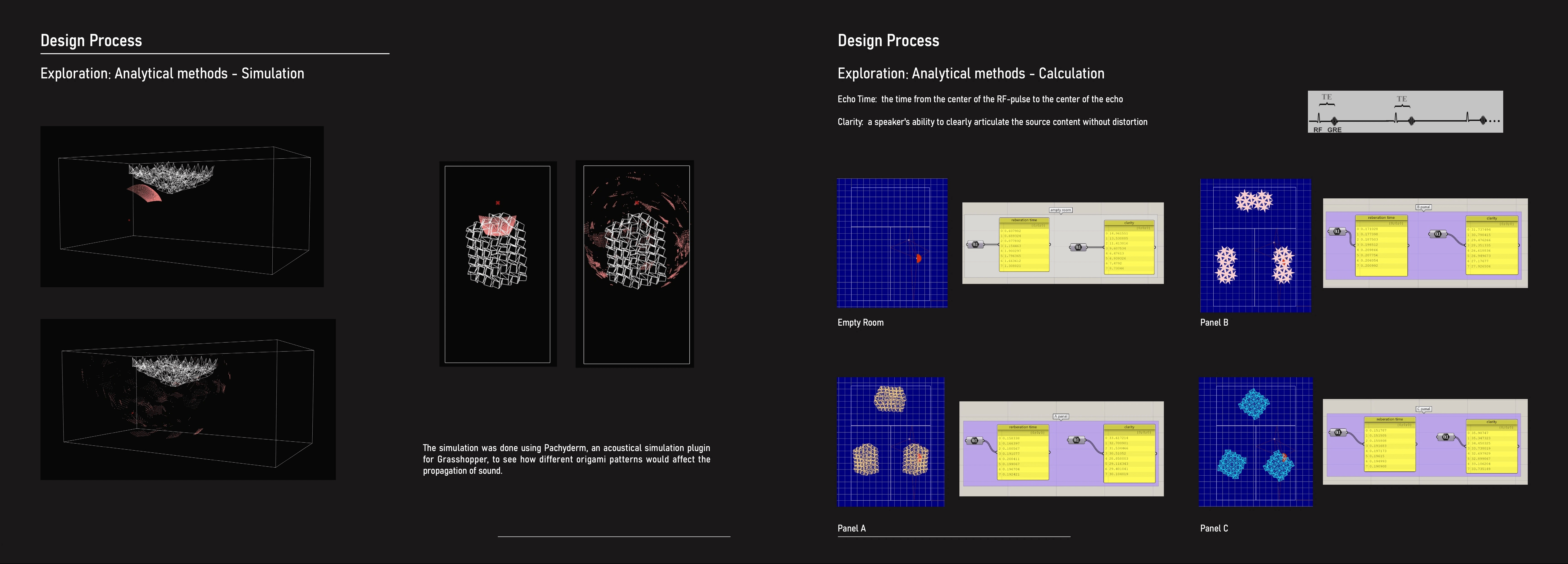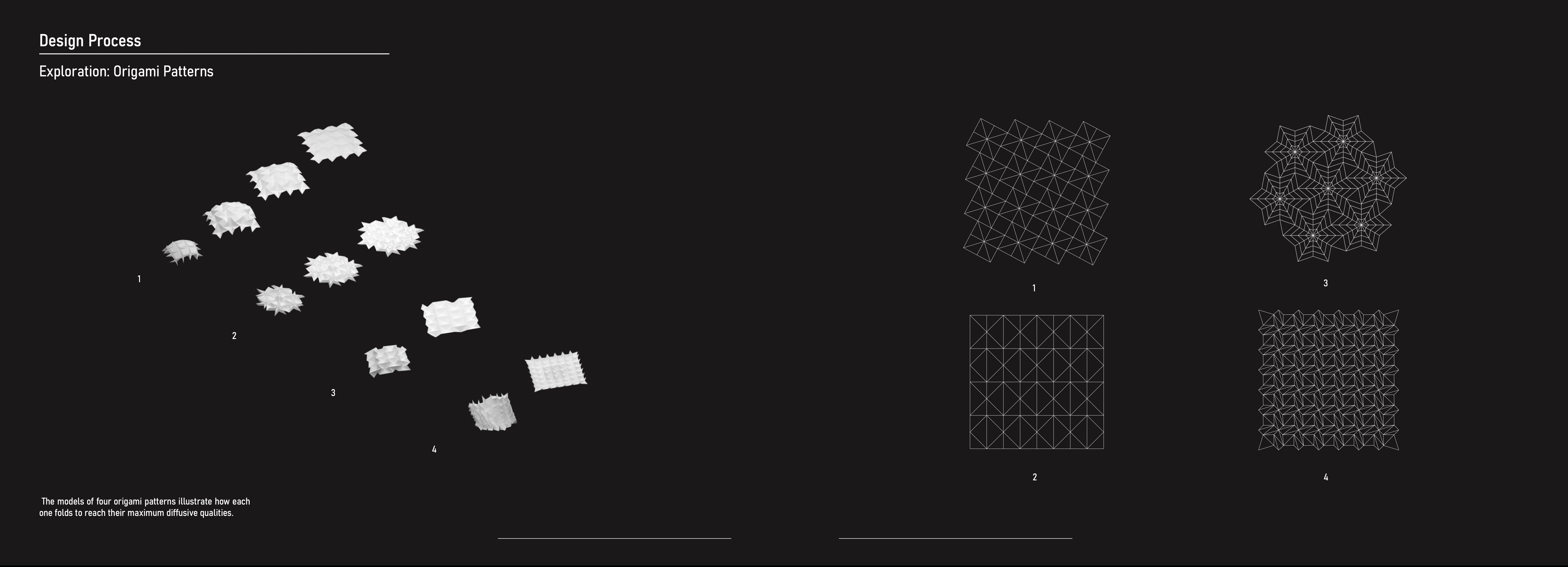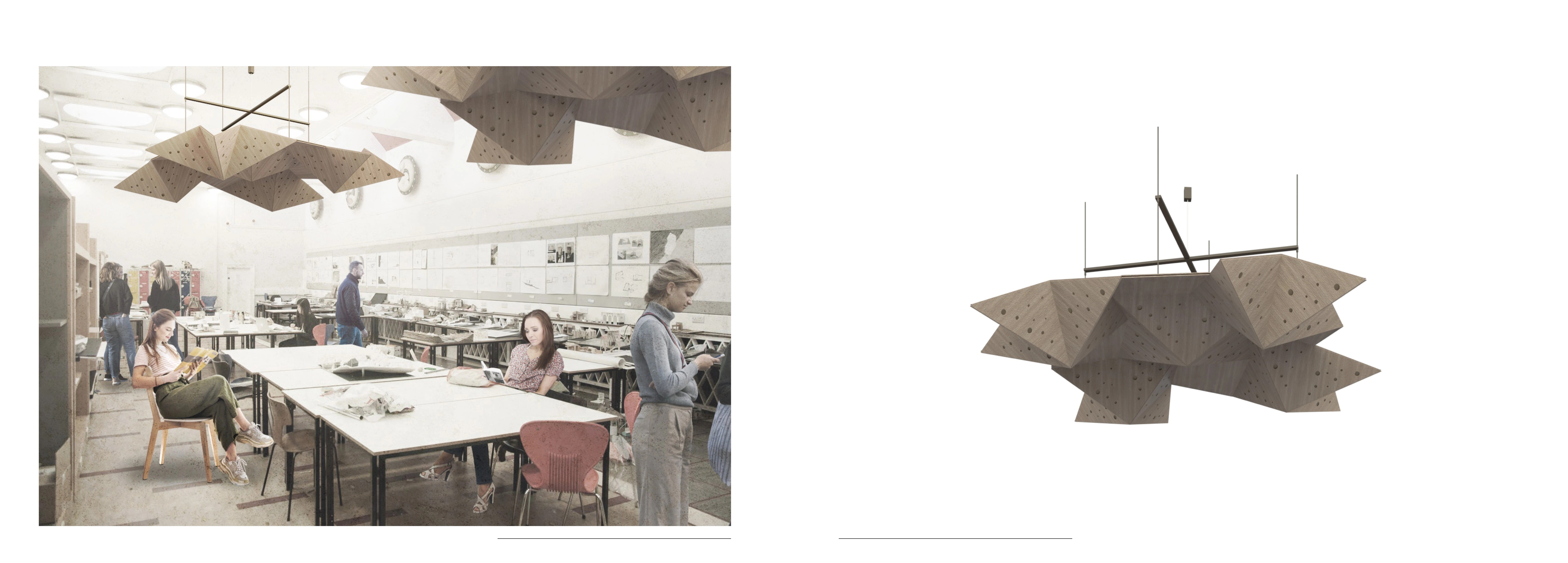 The project intends to employ a parametric design to solve the noise issue through a device that treats sound aberrations within the university’s studio space, Adam House. This acoustic device will both diffuse and absorb sound and have aesthetic and foldable qualities, flexible for various types of activity that might have different noise levels.