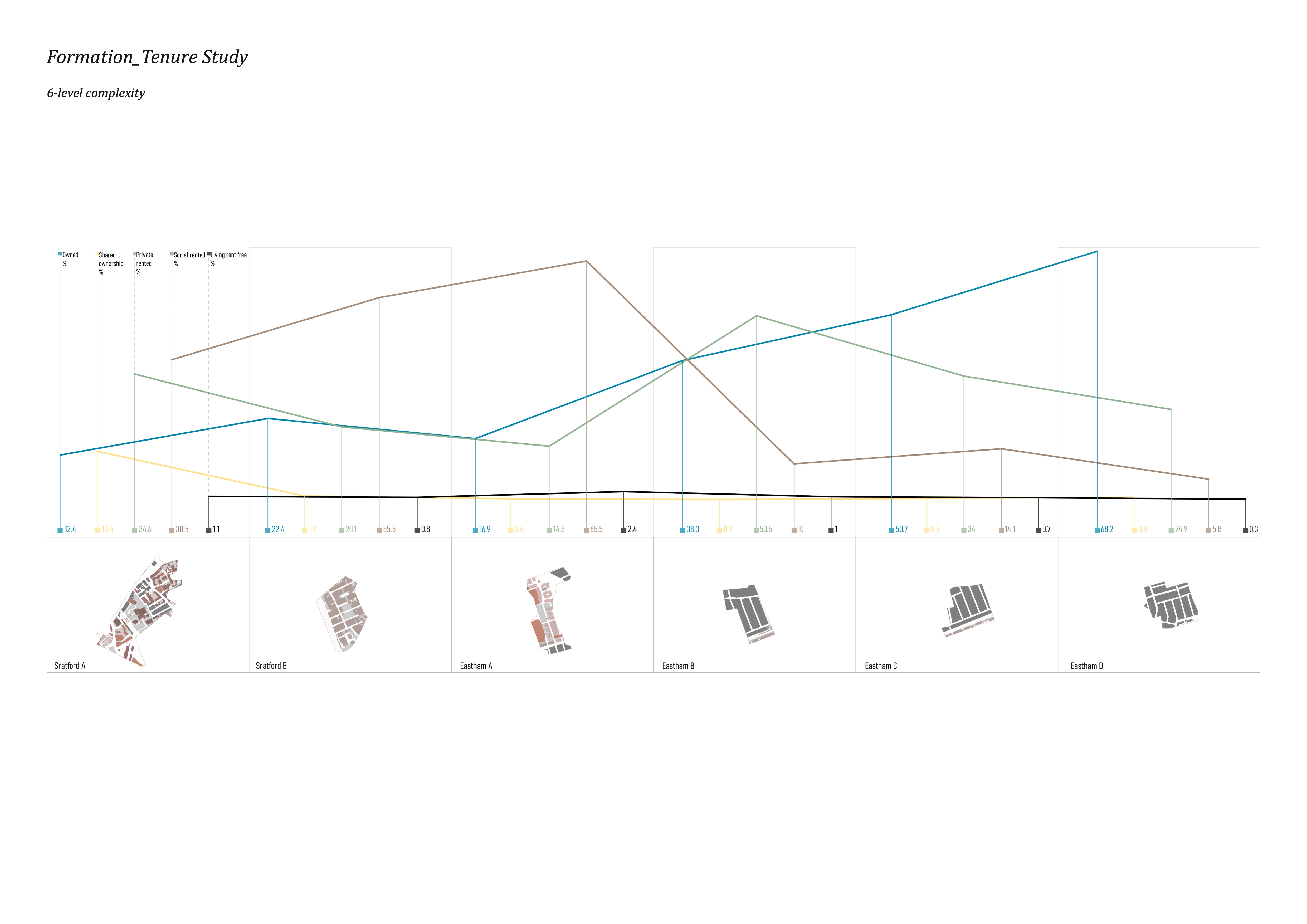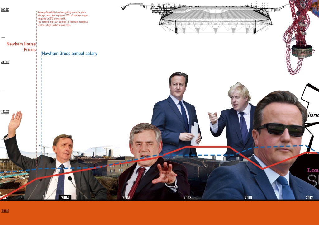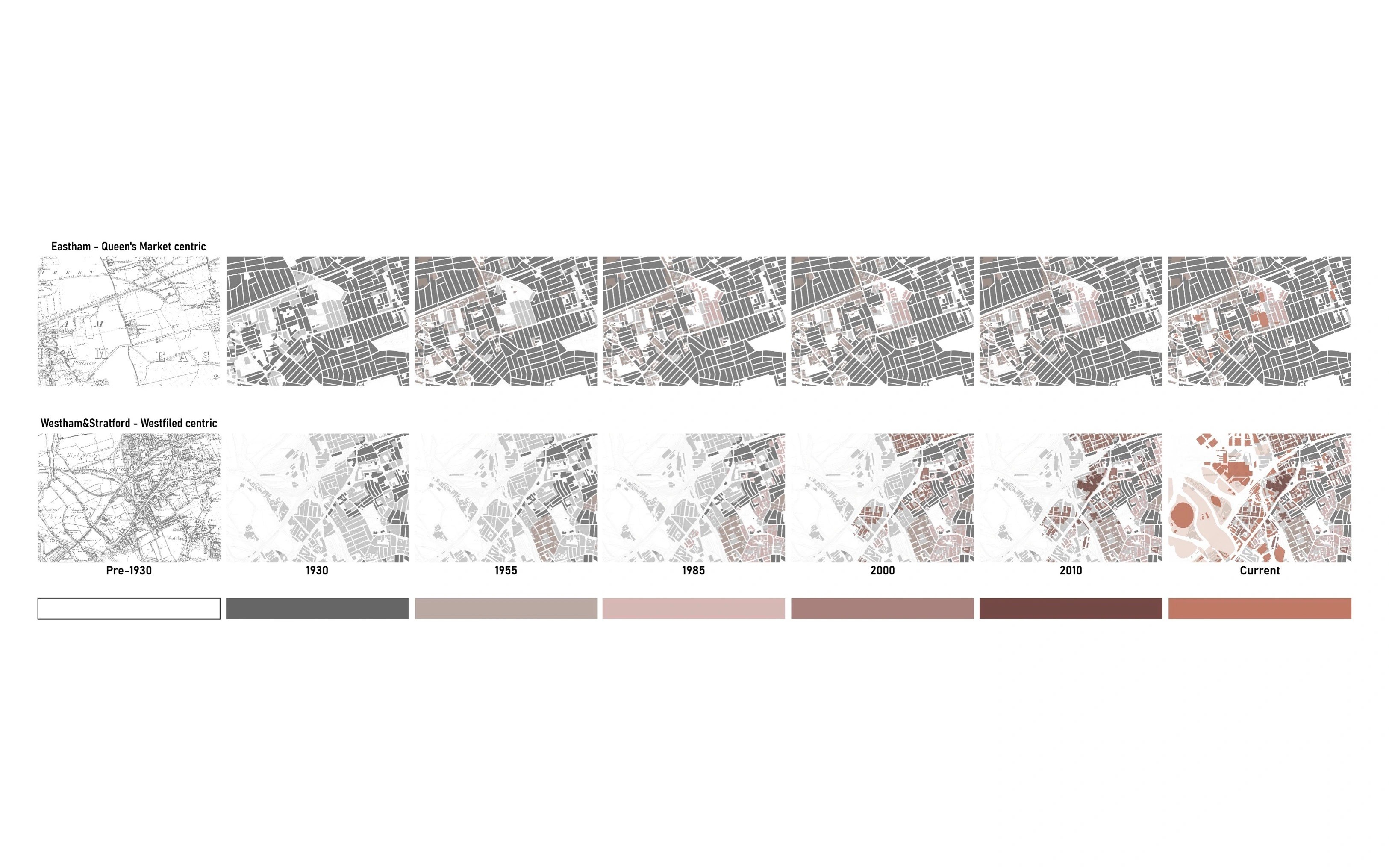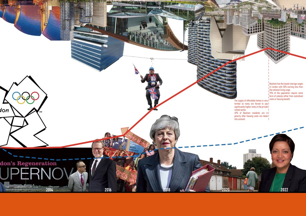 The observation traces the changes in Newham, a borough in East London, exploring the gaps behind the development appearing with time and space.